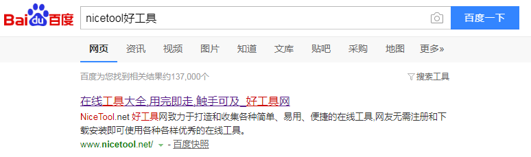 第一步:百度搜索nicetool好工具,排名第一的就是,点击进入